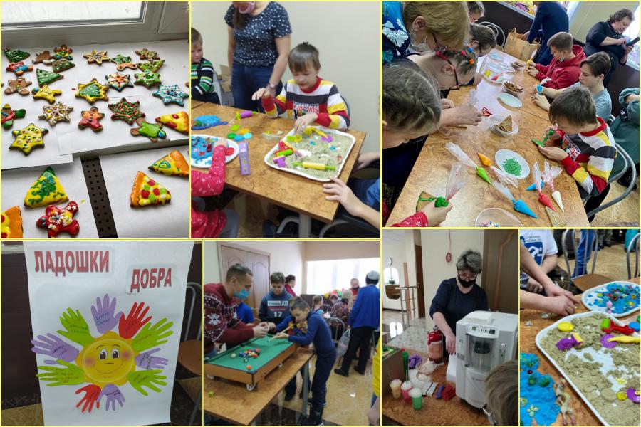 А после официальной части фестиваля, где награждали замечательных и очень талантливых "особенных" детей, победителей и участников всевозможных районных, областных мероприятий и соревнований, для гостей открылась увлекательная «Ярмарка мастер–классов», состоящая из нескольких творческих станций: кинетический песок, рисование, аква-грим, ладошки добра, роспись пряников, рождественские венки и др.